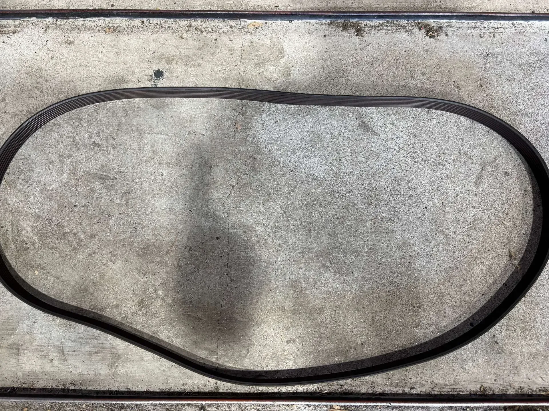 写真では見えにくいですが、ひびが入ってます。このまま放置し劣化が進むと、ベルトが切れ、オーバーヒートやエアコンの不調など様々な故障の原因になります。