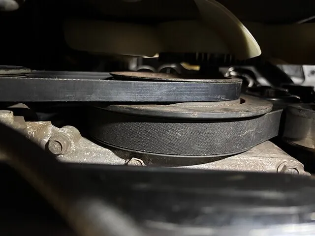 エンジンルームを覗き込むと、ファンベルトの存在感が際立ちます。